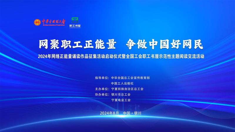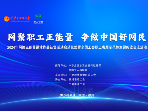 直播回顧丨“網聚職工正能量 爭做中國好網民”2024年網絡正能量誦讀作品征集活動啟動儀式暨全國工會職工書屋示范性主題閱讀交流活動?????根據中華全國總工會、中央網信辦聯合發布的《關于開展2024年“網聚職工正能量 爭做中國好網民”主題活動的通知》(總工字〔2024〕16號)要求,2024年由全國職工書屋和寧夏回族自治區總工會共同承辦“閱讀經典好書 爭做中國好網民”全國網絡正能量誦讀作品征集活動暨全國工會職工書屋示范性主題閱讀交流專場活動。中工網首頁、微博、抖音號同步直播。