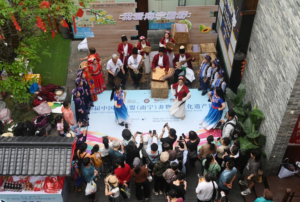 ??今年“三月三”期間,在南寧市三街兩巷的慶祝活動現場,多彩非遺文化展演吸引游客駐足欣賞。新華社記者陸波岸 攝