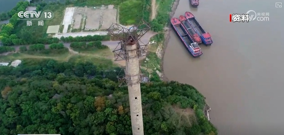 這座建在東梁山上的煙囪式電塔,是新中國第一座投入使用的跨江電塔。在2019年進行了爆破拆除,天門山的風貌得以恢復。伴隨舊電塔的倒下,白鶴灘送往江蘇的800千伏特高壓新電塔拔地而起。
