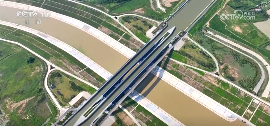 江水北上的過程中,有這樣一座“河上有河”的水利奇觀。這是因為淠河總干渠擋住了引江濟淮北上的河道,為了讓河水不犯江水,水利建設者架設渡槽,讓淠河從運河上“飛跨而過”。這座鋼渡槽主跨跨度達到110米,是目前世界上單跨最大的通水、通航鋼結構渡槽。