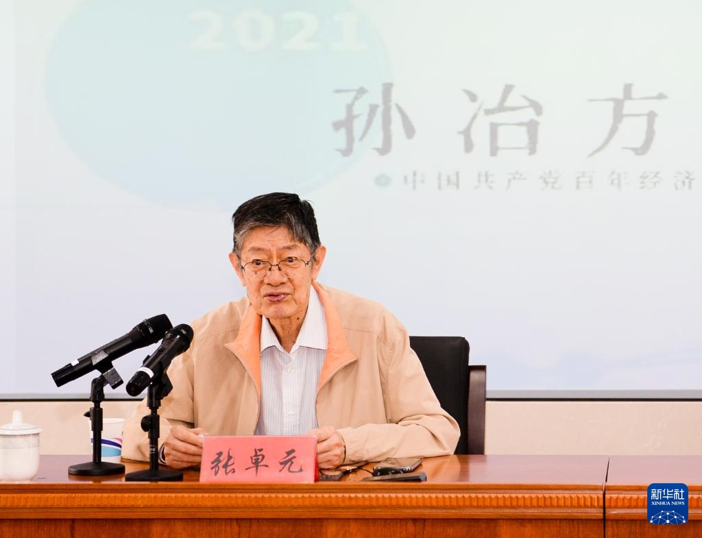 2021年5月20日,張卓元在中國社會科學院經濟研究所孫冶方報告廳作學術報告。新華社發(中國社會科學院經濟研究所供圖)