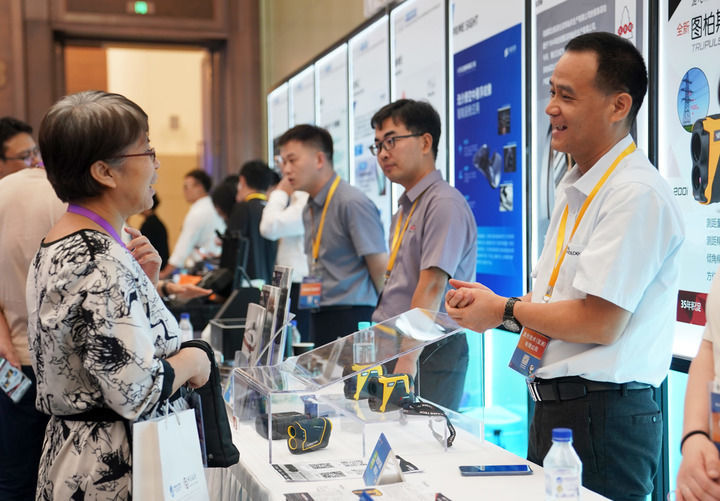 2024年8月8日,在上海舉行的第七屆進博會技術裝備、汽車展區展前供需對接會現場,展商工作人員(右)向采購商介紹企業產品。新華社發(陳浩明 攝)