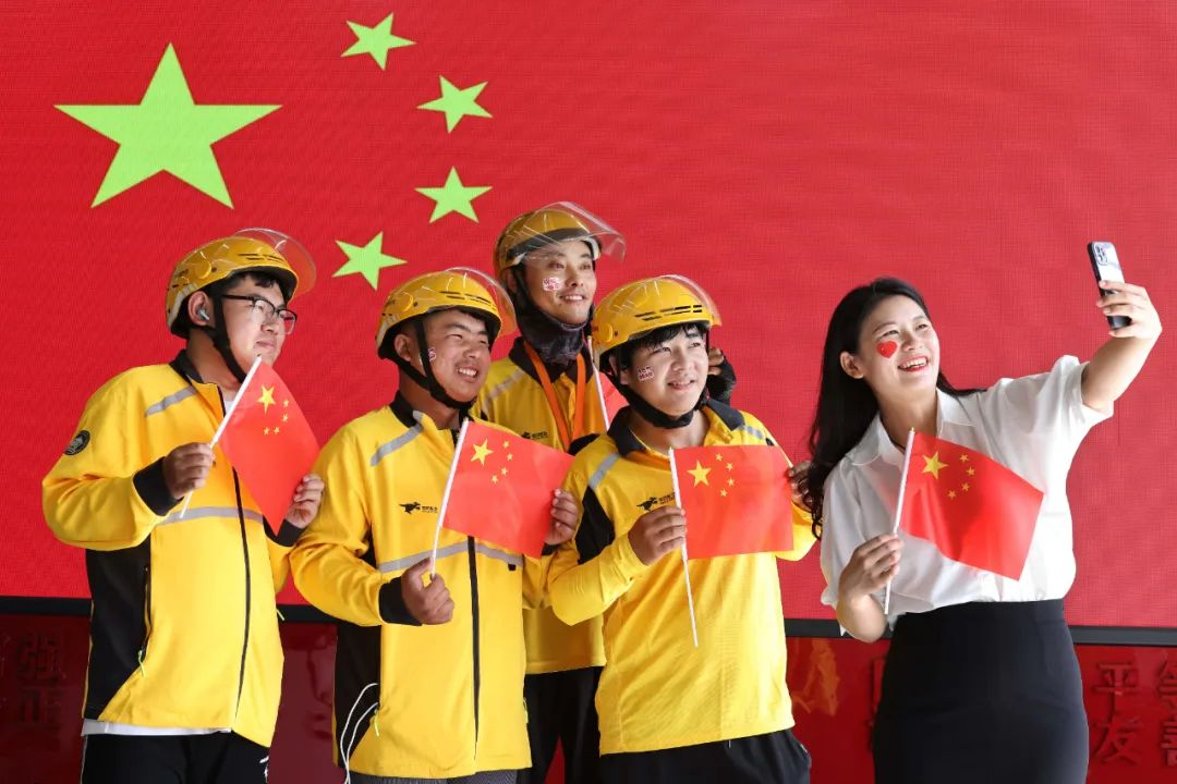 9月29日,江蘇省連云港市連云區墟溝街道東園社區工會開展“祝福祖國 我與國旗合個影”活動。社區工作人員、外賣小哥與國旗同框合影。