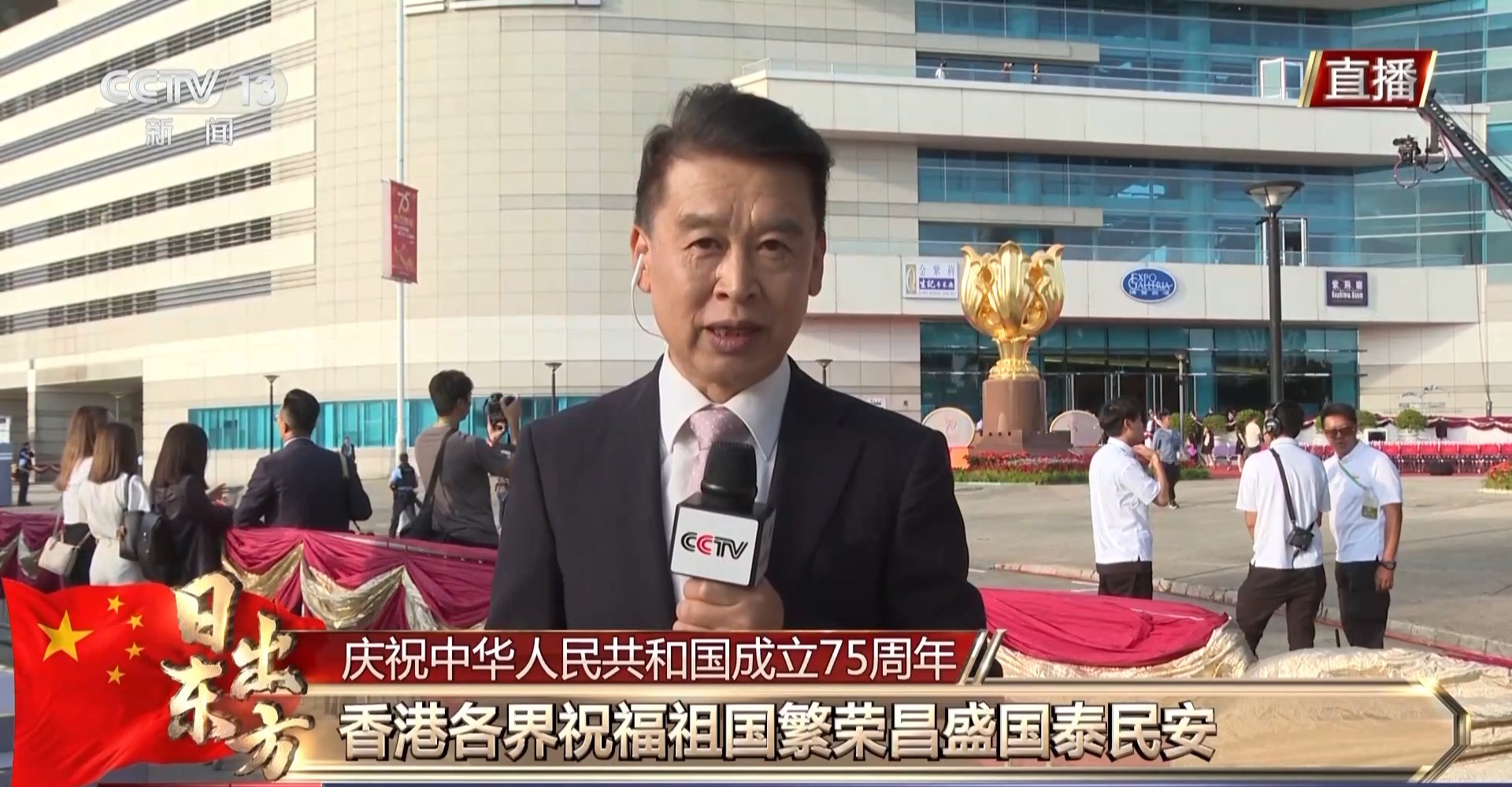 總臺記者 金東:我現在是在香港金紫荊廣場,今天8時,香港特區政府將在這里舉行升旗儀式,隨后還將在會展中心大會堂舉行國慶酒會,慶祝中華人民共和國成立75周年。