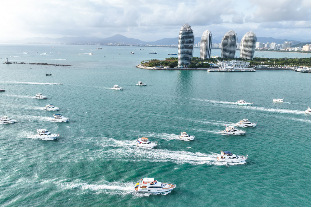 這是2024年2月28日拍攝的三亞海面上的游艇(無人機照片)。新華社記者 張麗蕓 攝