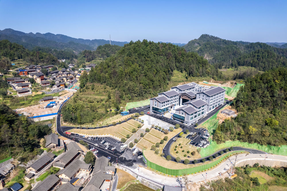 這是2023年11月1日在湖南省湘西土家族苗族自治州花垣縣雙龍鎮十八洞村拍攝的十八洞田園綜合體(無人機照片)。新華社記者 陳思汗 攝