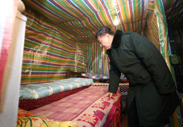 一天之內,橫跨兩省市,足跡覆蓋農村、社區、學校等7處考察點,冒著嚴寒而往,沐著夜色而歸,只因“心里一直惦念著災區的人民群眾”。