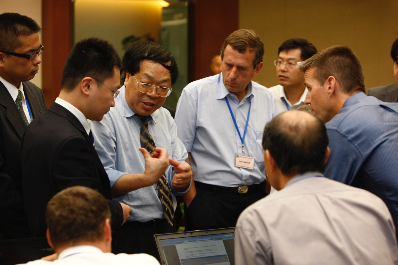 2009年9月4日,包起帆在國際標準化組織會議上與同行交流。