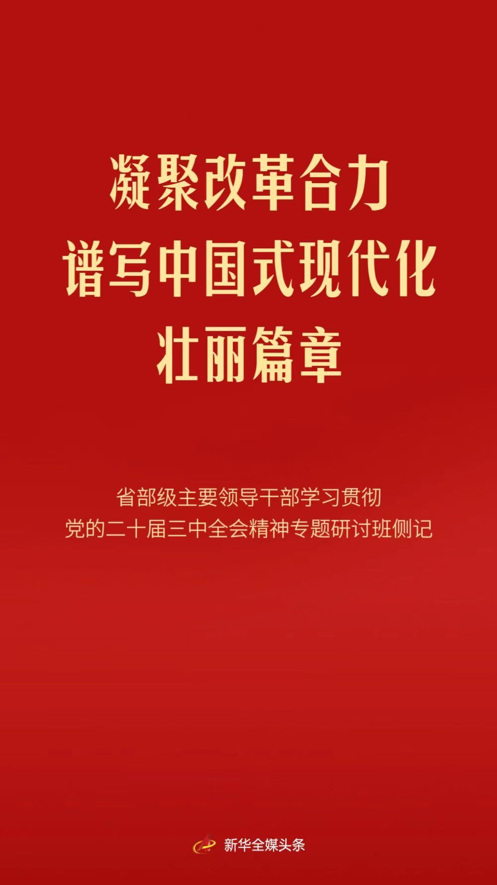 在以中國式現代化全面推進強國建設、民族復興偉業的關鍵時期,在全黨全國深入學習貫徹黨的二十屆三中全會精神的重要時刻,省部級主要領導干部齊聚中央黨校(國家行政學院),進一步統一思想和行動,推動全會精神更好貫徹落實。