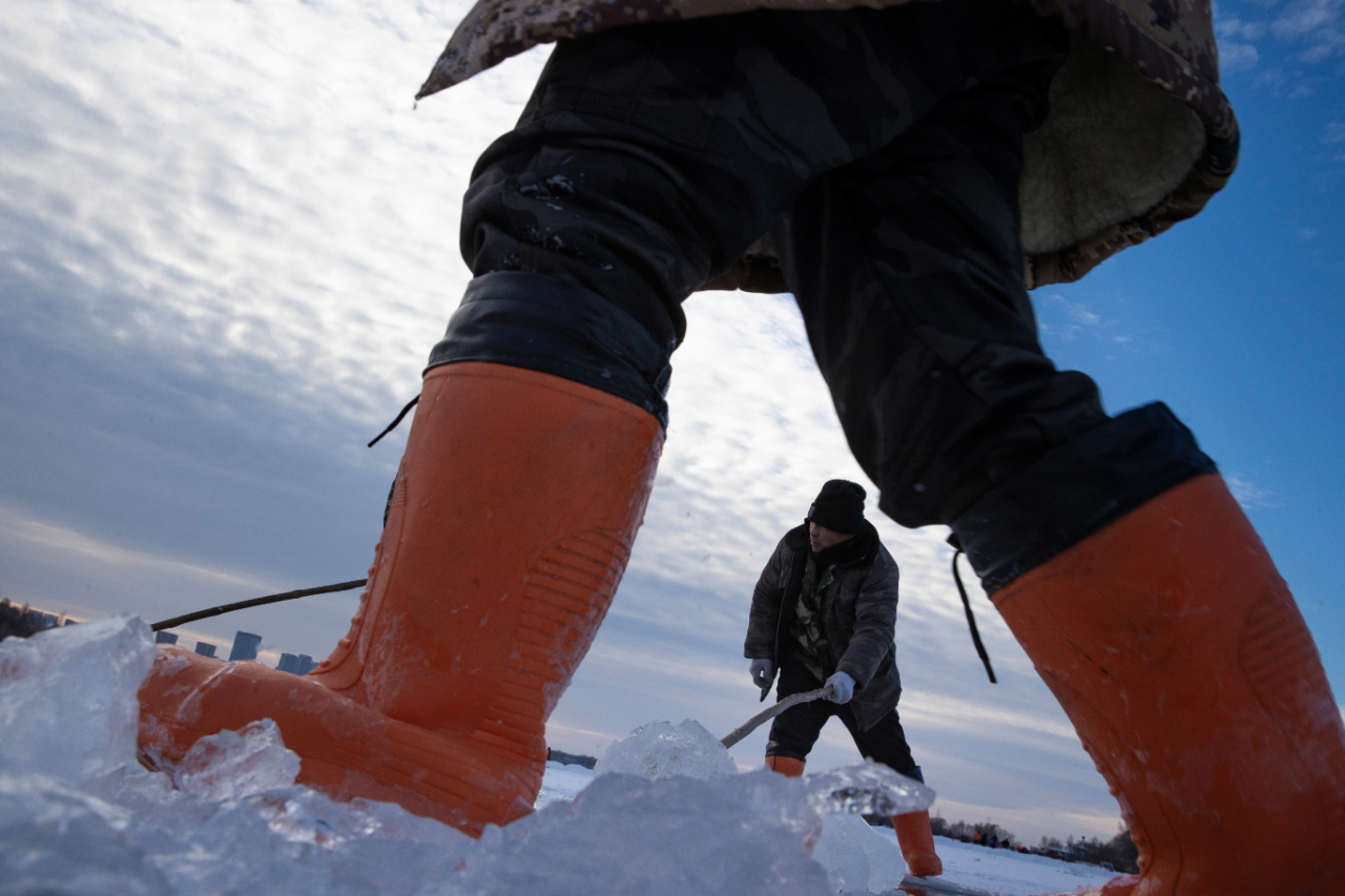 如今,隨著哈爾濱冰雪節的走紅,越來越多的南方“小土豆”喜歡在冬天來東北感受冰雪的樂趣,采冰的需求也隨之增多,采冰成了這群東北漢子家門口的季節性職業。