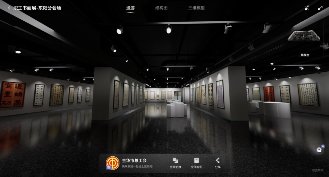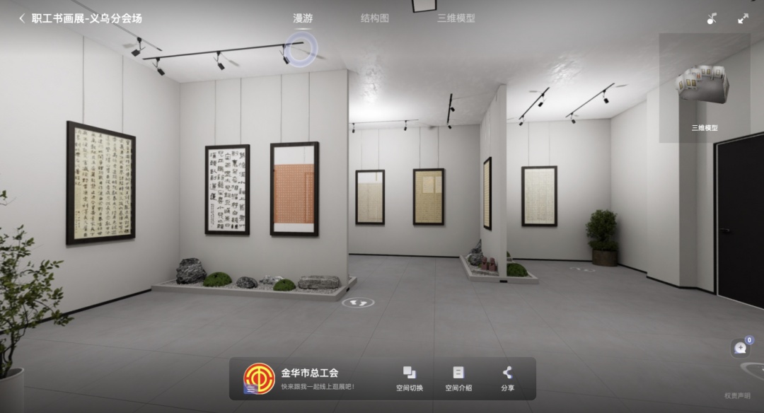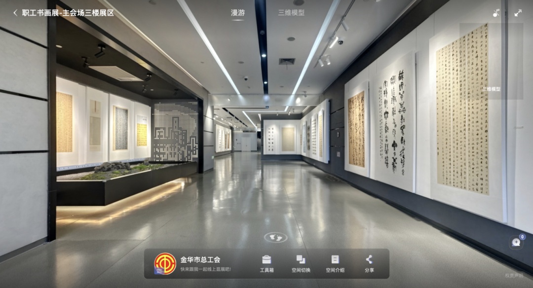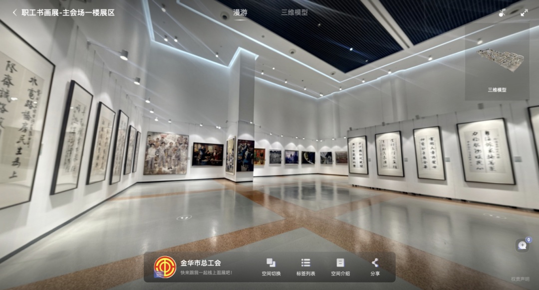 “云游”金華,盡賞書畫之美。由中華全國(guó)總工會(huì)宣傳教育部、浙江省總工會(huì)共同主辦的全國(guó)職工文體示范活動(dòng)、第九屆全國(guó)職工書畫展運(yùn)用數(shù)字VR展廳技術(shù),帶您置身浙江金華,一同探索本次書畫展線上VR展廳的精彩內(nèi)容!