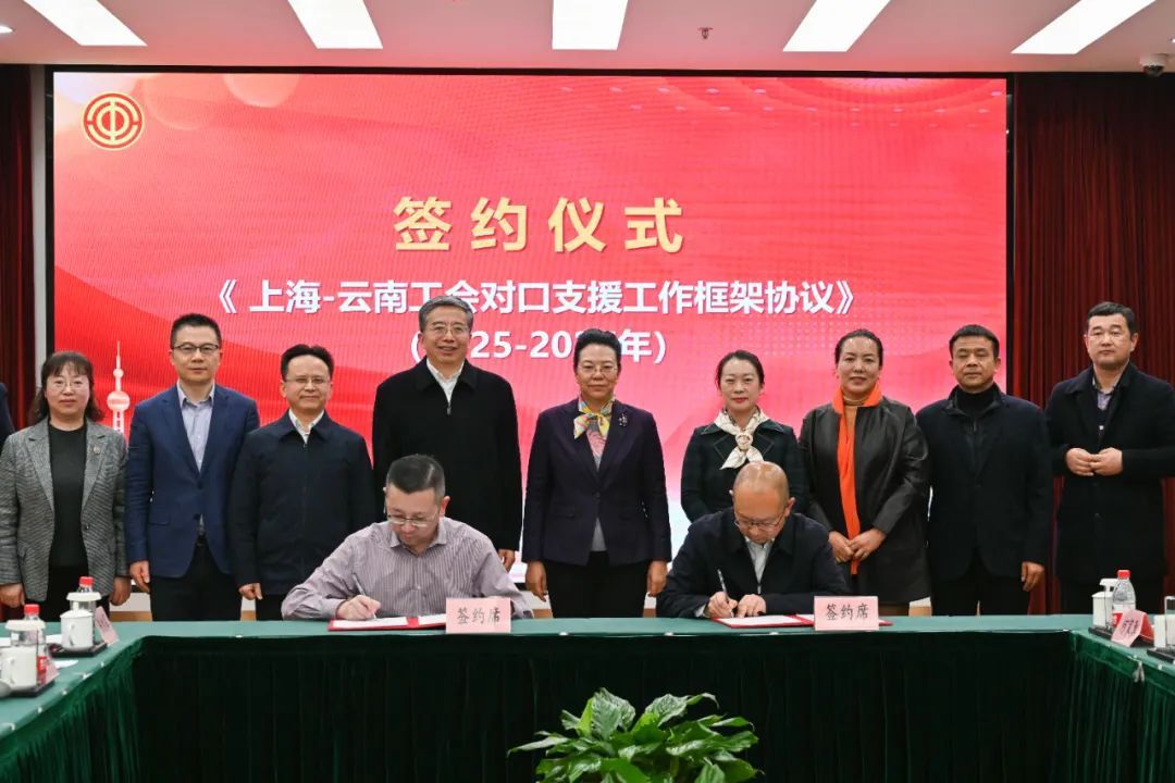 隨后,兩地工會簽訂《上?!颇瞎谥гぷ骺蚣軈f議》。根據協議,2025年到2027年,兩地工會將健全完善對口支援工作機制,圍繞“學習交流一批、培訓扶持一批、愛心幫扶一批、療養合作一批、走訪慰問一批”重點任務,繼續開展技術幫扶協作、工會干部等人員培訓、職工療休養合作、滬滇對口支援地區職工“點亮微心愿”、消費幫扶對口支援地區鄉村振興支持計劃等項目。