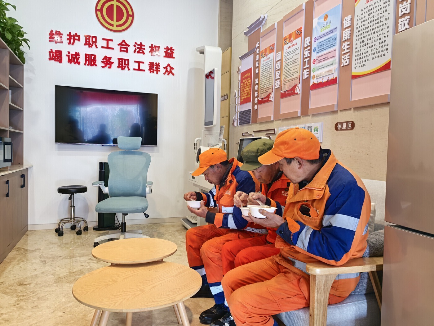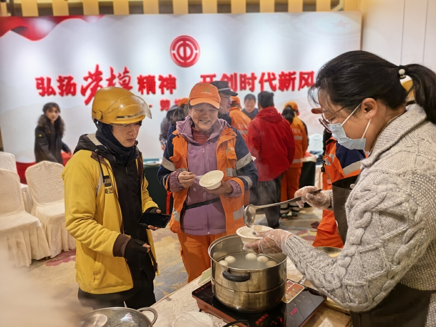 一碗臘八粥,寓意諸事美好、平安健康。活動現場,工會工作人員煮了一大鍋熱情騰騰的臘八粥,分給在場的勞動者。一名環衛工人接過臘八粥說:“今天臘八節,喝上一碗熱乎乎的臘八粥,感覺心里暖暖的、甜甜的!”工會驛站里,大家圍坐一起,喝著濃郁香糯的臘八粥,談笑間都是幸福的味道。