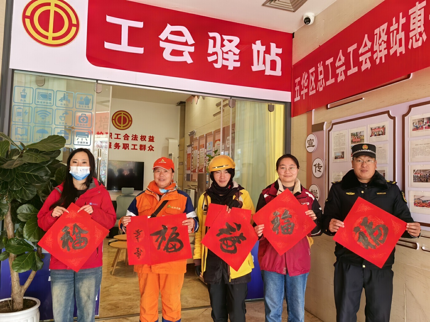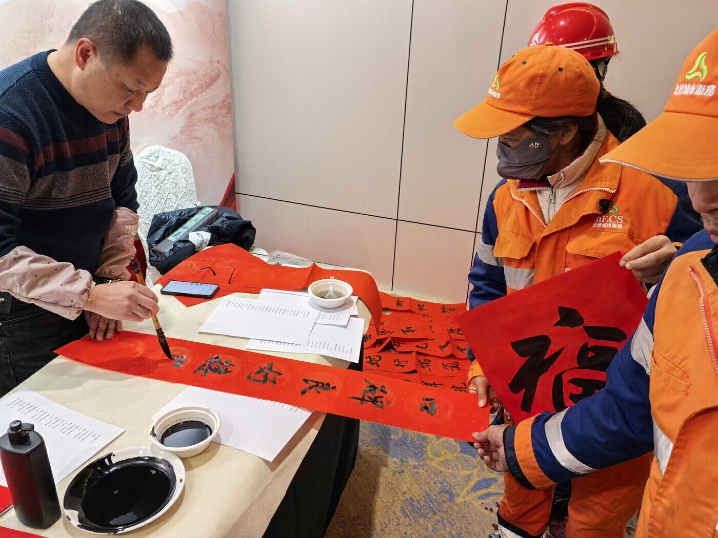 活動還邀請書法家現場揮毫潑墨,為大家送上寓意蛇年吉祥的春聯和“福”字。在現場的各位勞動者也互送祝福,共同憧憬著美好嶄新的一年,每個人臉上都洋溢著幸福的笑容。