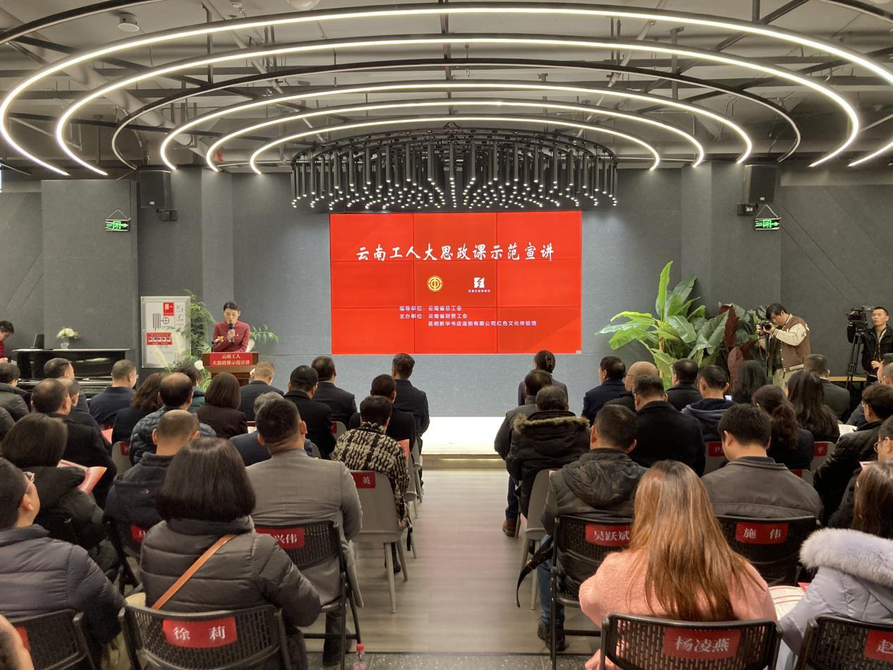 1月10日,云南工人大思政課首場示范宣講在云南省財貿系統大思政課實踐教育基地云南省紅色文化體驗館開講,活動通過身邊的教育基地、行走的思政課堂,全方位整合工會宣傳資源,創新打造“云南工人大思政課”,更好發揮工會“大學?!弊饔茫阉颊I融入工會工作全過程、各方面,為進一步全面深化改革凝聚人心匯聚力量。