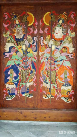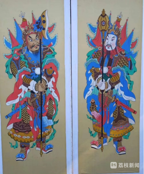 張桅:上古時期,人們會在門上畫出《山海經》中神荼、郁壘兩位神仙及老虎的像,希望借助他們的力量來驅邪避禍。在漢代,門神形象開始從神祇向人物角色轉變,駐守閬中的張飛也被納入門神的行列,進一步推動了門神的人性化。到了唐代,秦瓊和尉遲恭兩位大將勇猛善戰,他們被繪制成門神的形象以驅邪避鬼,門神的形象更加多樣化,鐘馗、岳飛、關羽等武將形象也成為了門神。