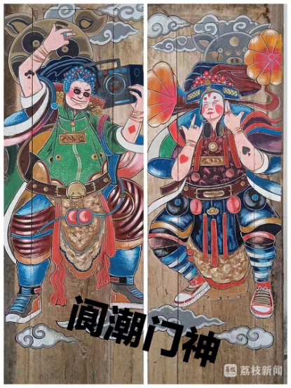 我從事畫門神和門神修復制作已經有20多個年頭了,我對門神畫的感情越來越深,認識也越來越深刻,其中一點就是,傳統技藝也要與時俱進,才能保持鮮活的生命力,包括計算機等的使用,創作主題的更新等等。如今,卡通版門神畫很受年輕人喜歡,都說這是新閬潮,這對門神畫非遺的傳承非常重要。