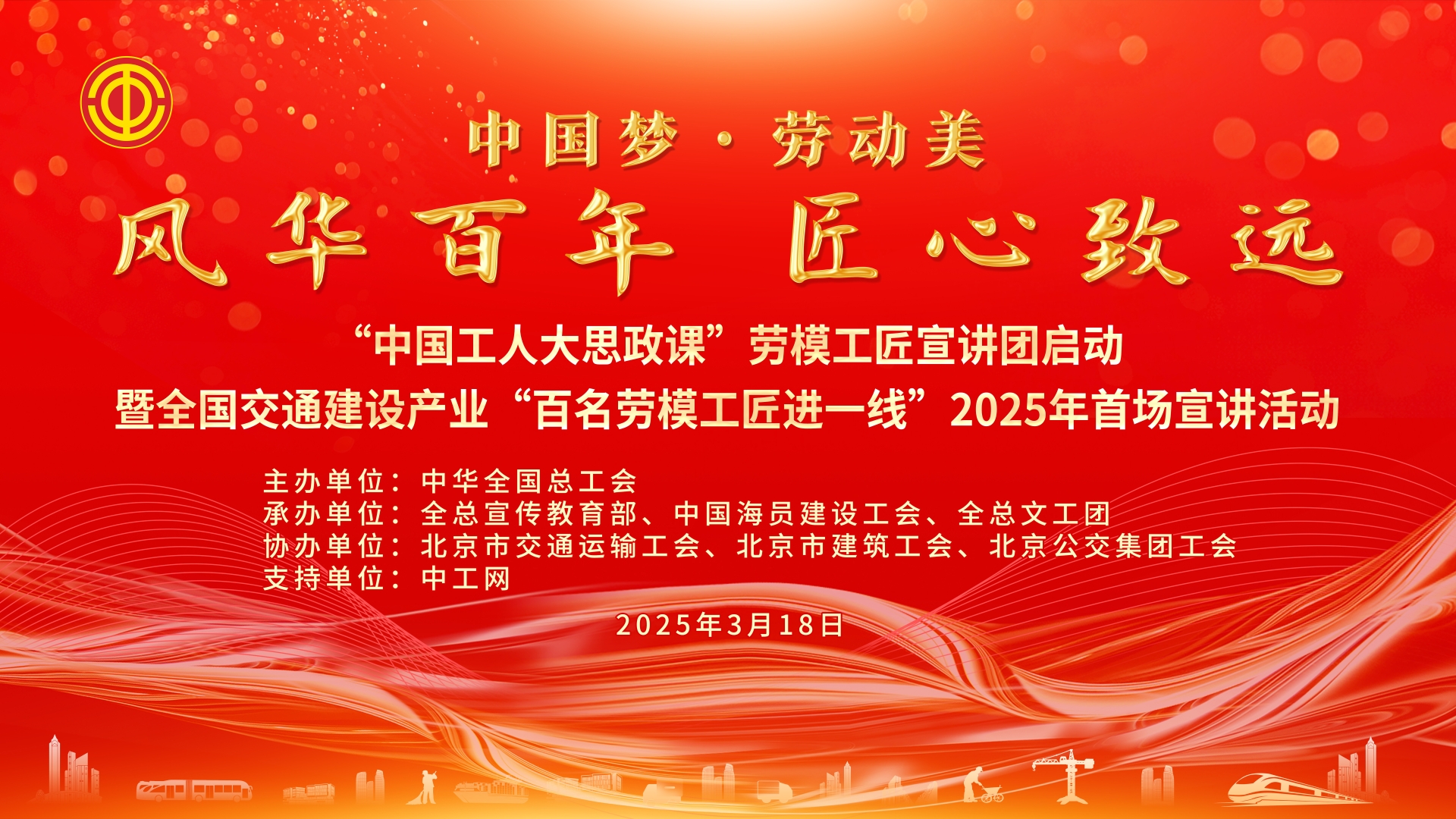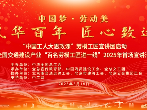 直播回顧丨風華百年,匠心致遠——“中國工人大思政課”勞模工匠宣講團來啦!??????“中國工人大思政課”勞模工匠宣講團啟動暨全國交通建設產業“百名勞模工匠進一線”2025年首場宣講活動于3月18日15:30,在職工之家APP、中工網等媒體平臺進行全程直播。本次活動由全國總工會主辦,全總宣傳教育部、中國海員建設工會、全總文工團承辦,北京市交通運輸工會、北京市建筑工會、北京公交集團工會協辦。本次活動邀請5位交通建設系統勞模工匠代表進行主題宣講,全總文工團和北京公交集團職工藝術團帶來精彩紛呈的文藝節目。