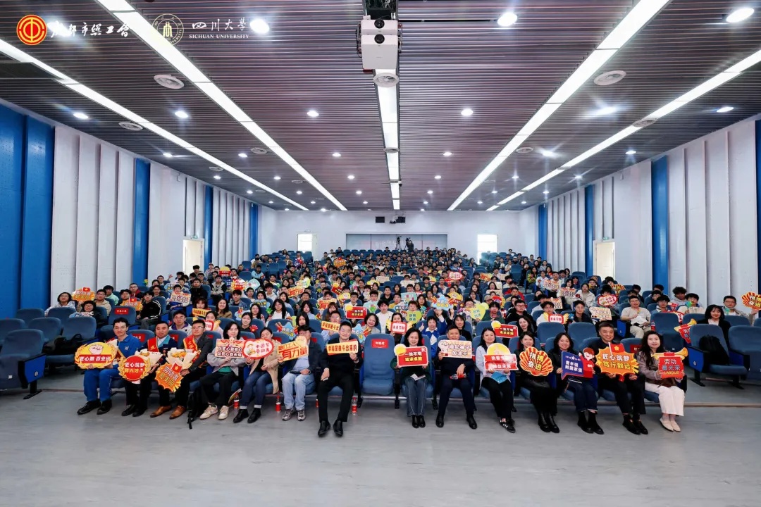 3月25日,由成都市總工會主辦,四川大學、成都市雙流區總工會協辦的成都“中國工人大思政課”·成都市勞模工匠巡回宣講示范活動在四川大學江安校區水上報告廳舉行。四川大學350余名師生代表參加宣講活動。