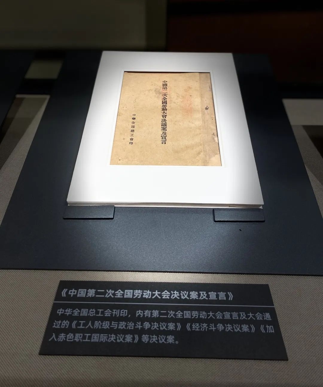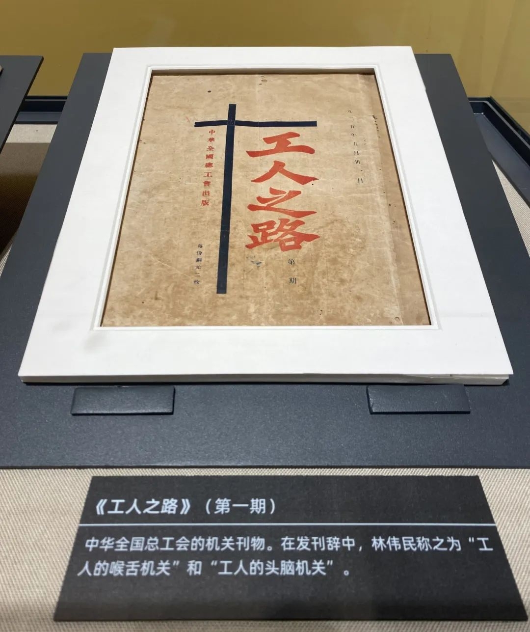 紀念館陳列著209件套文物,其中鎮館之寶之一,是國家二級文物——中華全國總工會首個機關刊物《工人之路》第一期。林偉民在發刊辭中,稱其為“工人的喉舌機關”“工人的頭腦機關”。