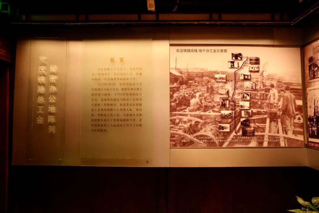 京漢鐵路總工會舊址原為舊式磚木結構的普通民宅,內有廳堂、居室、廚房,中間為一個天井。1923年2月3日,京漢鐵路總工會領導人從鄭州來到漢口江岸,租用這里作為秘密辦公地,陳潭秋、林育南、項英等曾在這里開會,起草宣言、電稿,編寫宣傳品,這里是領導京漢鐵路同盟罷工的指揮部。1956年公布為省級文物保護單位,1980年按照原貌修復,并辟有《京漢鐵路總工會秘密辦公地陳列》展覽。