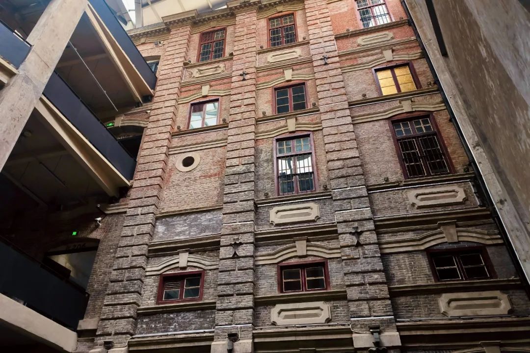 與廊頂裸露的蒸汽管道、齒輪傳動裝置