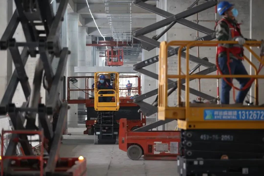 2022年3月10日,北京工人體育場建設工地,工人們正在施工。