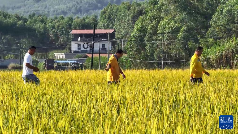 在廣西柳城縣,彭春林(中)和工友幫助推進(jìn)“旱改水”項(xiàng)目建設(shè)(2024年8月27日攝)。新華社記者 張愛林 攝