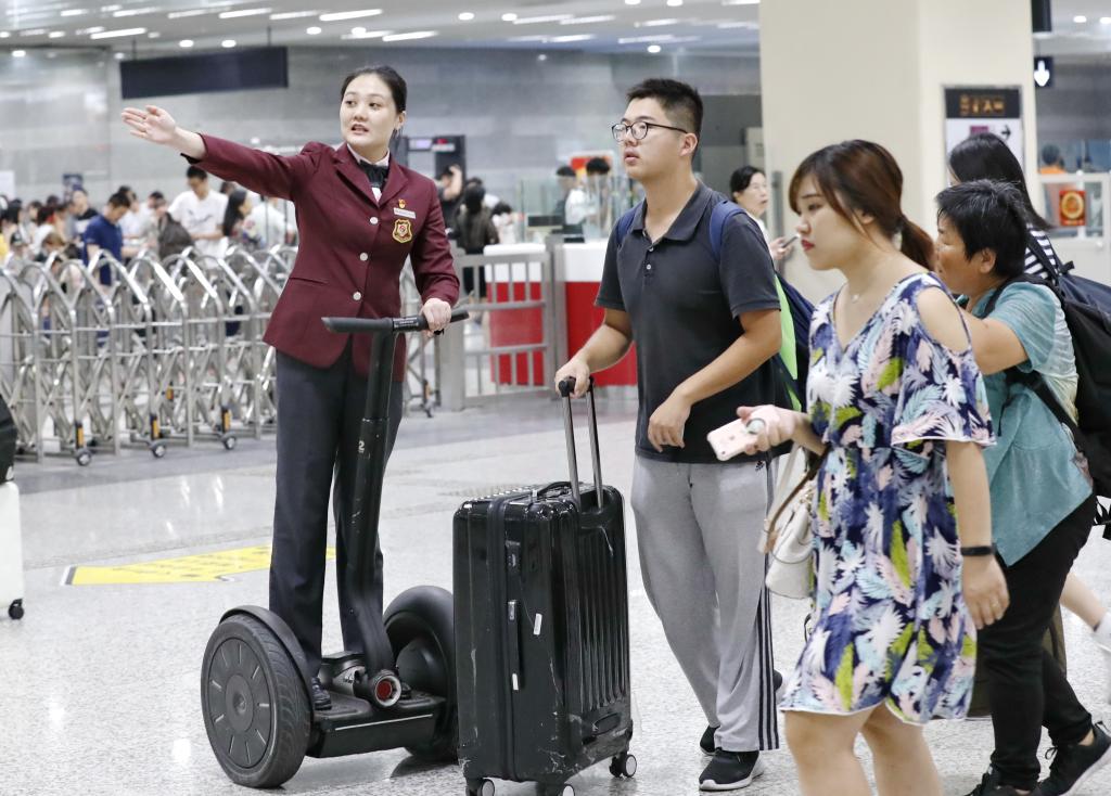 “有了平衡車,乘客更容易找到我們,我們也能更快發現需要幫助的乘客,服務響應速度提升了一倍。”高煜自豪地告訴記者,“如今這項特色服務品牌被命名為‘小煜流星輪’,已推廣到國家會展中心站、人民廣場站、徐家匯站等多個重要換乘樞紐。”