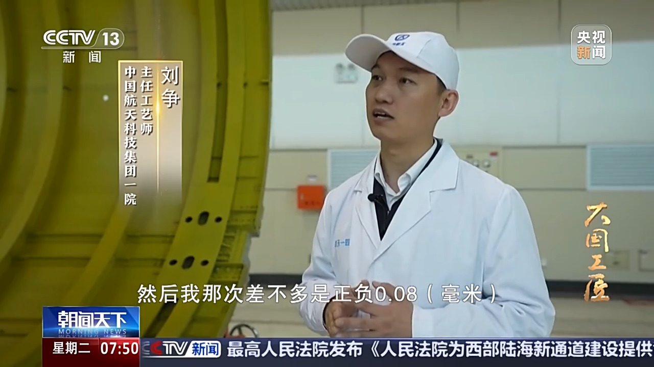 中國航天科技集團一院主任工藝師 劉爭:那個數據是100%合格,而且精度很高,我們以前呢,要加工好幾次才能保證這個精度正負0.15毫米,然后我那次差不多是正負0.08毫米,將近提高了一倍吧,而且是一次加工完成。