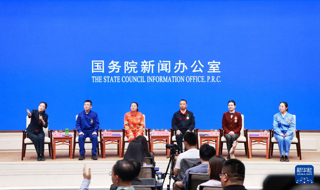 4月29日,國(guó)務(wù)院新聞辦公室在北京舉行“新征程上的奮斗者”中外記者見(jiàn)面會(huì),全國(guó)勞動(dòng)模范和先進(jìn)工作者代表圍繞“弘揚(yáng)勞模精神 勇?lián)鷷r(shí)代使命”與中外記者見(jiàn)面交流。新華社記者 潘旭 攝