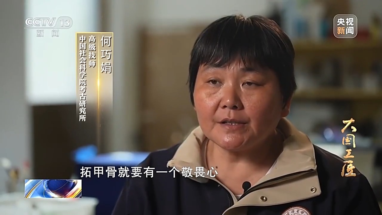中國社會科學院考古研究所高級技師 何巧娟:心里是非常自豪的,拓的東西全國人民都可以看到,讓中華民族的傳統文化發揚光大,讓3000多年的文化也“活起來”。只要有需要,我就會一直做下去。