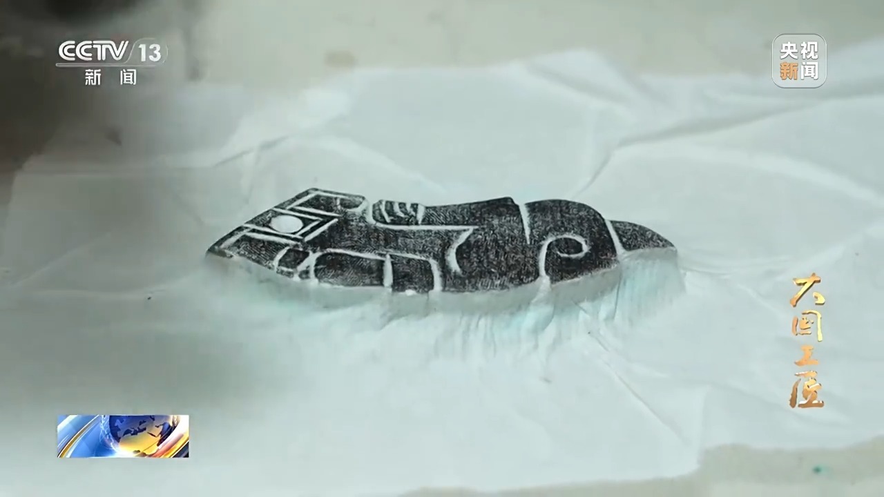 中國社會科學院考古研究所高級技師 何巧娟:一般來說,帶文字、帶花紋、品相比較好的,會需要拓下來,方便保存與研究??脊艃r值和研究價值比較高的,我們會進行1∶1的全形拓。