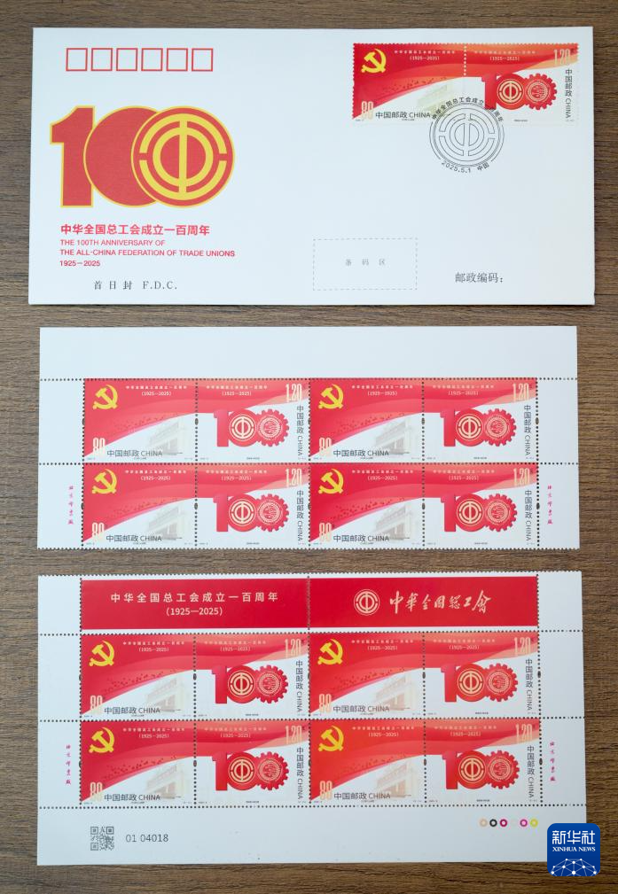 5月1日,中國郵政發(fā)行《中華全國總工會成立一百周年》紀念郵票1套2枚,郵票圖案名稱為:億萬職工心向黨、團結(jié)奮斗新征程。