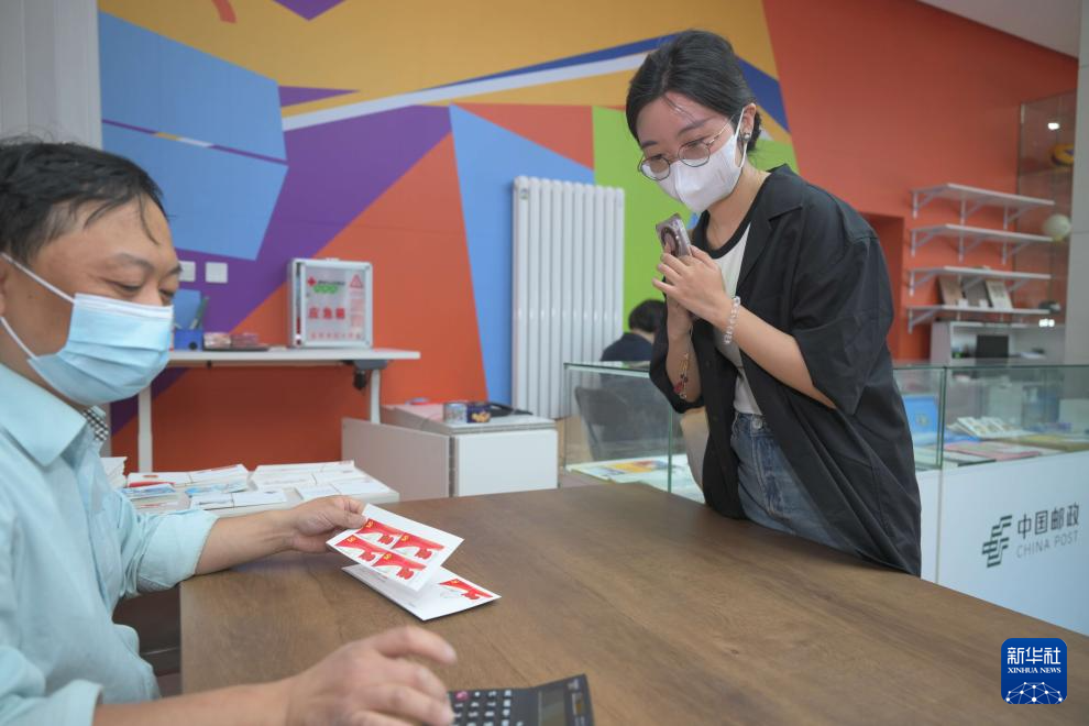 5月1日,集郵愛好者在北京市朝陽區(qū)郵票公司購買《中華全國總工會成立一百周年》紀念郵票。新華社記者 才揚 攝