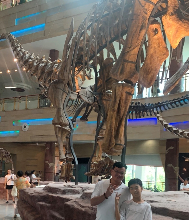 最震撼的是編號(hào)AHM-2017的皖南巨龍股骨化石。這根長(zhǎng)達(dá)2.3米的灰黑色骨殖表面布滿蜂窩狀結(jié)構(gòu),解說牌寫著“中生代承重結(jié)構(gòu)的生物力學(xué)奇跡”。他忍不住比劃自己1.8米的身高,想象這頭30噸巨獸如何用這樣的骨骼支撐軀體。