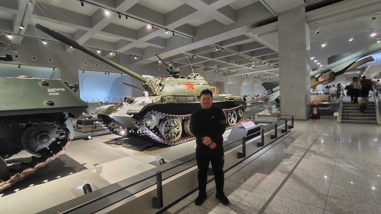 走進(jìn)展廳,我會(huì)直奔坦克區(qū)。熟悉的機(jī)油與鋼鐵的氣息瞬間將我拉回訓(xùn)練場(chǎng)——柴油機(jī)的轟鳴、手心發(fā)燙的操縱桿、與戰(zhàn)友搶修故障的深夜。如今它們靜靜陳列,履帶不再碾過沙場(chǎng),彈痕仍是歷史的勛章。在T-34的傾斜裝甲前,在59式微揚(yáng)的炮管下,我總駐足良久。偶爾聽到有游客聊“不知道開坦克是什么感覺”,我會(huì)笑著指向剖面圖說:“駕駛艙像悶熱的鐵罐頭,但柴油機(jī)轟鳴時(shí),澎湃的力量感會(huì)讓一切不適微不足道。”