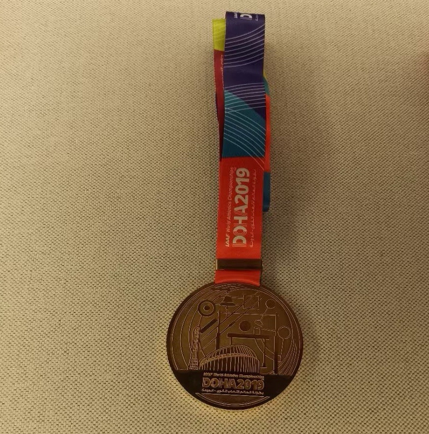 尤其令他印象深刻的,是2021年8月1日在河北省博物院邂逅鞏立姣在2019年卡塔爾多哈世界田徑錦標(biāo)賽獲得的鉛球金牌。“那天正好是我從老家蘭州乘坐高鐵到單位報(bào)到,在石家莊轉(zhuǎn)車時(shí),我抽空去參觀河北省博物院,沒想到竟與這枚金牌不期而遇,更巧的是,當(dāng)天正是鞏立姣在東京奧運(yùn)會(huì)奪冠的日子,這樣的巧合太奇妙了!”