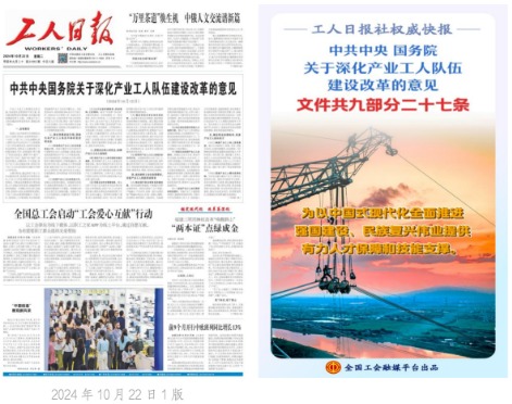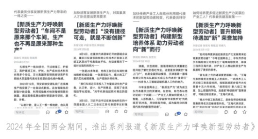 2024年,報社加大中央廚房供給,提升優質內容生產供給能力,以極具網絡傳播力的形式持續推出“工人日報e網評”“新360行”“工視點”“工道·專題”“八點《報》到”等一批“工”特色系列原創融媒報道,多形式報道第八屆全國職工職業技能大賽決賽等活動,制作的短視頻屢次登上抖音熱榜。積極策劃優質活動,拓展外部合作,與全總多個部門及全國產業工會合作推出“我的工裝范兒”傳展示活動等品牌特色活動。