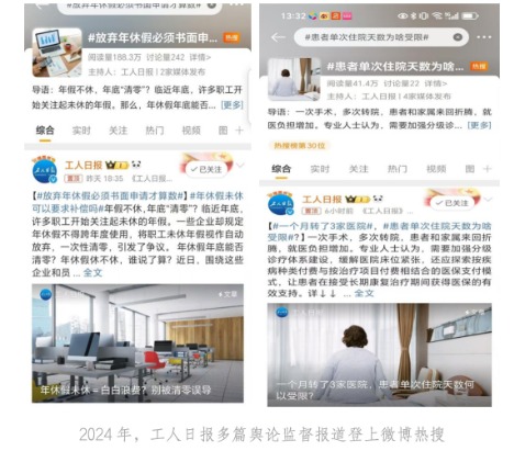 加強調查性報道。針對濫用競業限制、不合理的績效考核、職工離線休息權等職工關注的話題,推出《競業限制濫用現象調查》《別讓績效考核跑偏》《8小時之外,我能離線嗎?》等大量系列報道,受到廣泛關注。如:系列報道《仲裁維權經歷不該成為就業“絆腳石”》,關注勞動者因有勞動仲裁經歷而在求職就業中面臨困境的現象,第一篇稿件《“申請勞動仲裁,怎么就成了求職‘污點’?”》登上百度熱搜,閱讀量逾4000萬,引起有關部門重視,為做好相關工作提供借鑒。