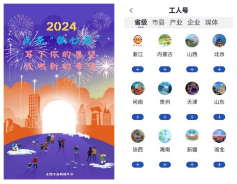 工人日報客戶端搭建“工人號”工作平臺,吸引多家產業工會、地方工會入駐,為各地工會提供了溝通、展示、服務的平臺。2024年春節前夕,全總微信公眾號創新發起“點亮微心愿”活動,邀請部分勞模工匠和廣大職工網友分享自己的新年微心愿以及背后的心愿故事,并在工人日報客戶端首頁進行彈幕展示,廣大網友共同幫助他們“點亮微心愿”,為廣大職工搭建交流、展示、互動的平臺。