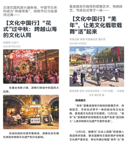 常設“文化·家園”“文化·新聞”版,生動宣傳優秀傳統文化。在傳統節日、節氣等時間節點,推出主題海報,宣傳中國文化。