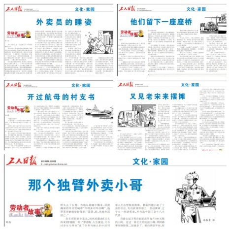 廣泛宣傳各行各業的先進人物,凝聚社會正能量,全媒體推出“最美職工”“勞動者之歌”“身邊的大國工匠”“勞動者故事”等專欄專題,在勞模人物版、農民工周刊、社會新聞版等持續刊登典型人物、先進事跡,推出《暴雨中,他用身體為行人豎起安全警示牌》《“日行一善”讓城市更有溫度》《與時間賽跑挽救生命》等大量報道,謳歌美好心靈,弘揚社會正氣。