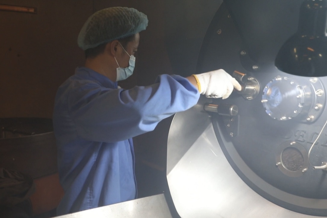作為2007年入職的老員工,許燕見證了咖啡加工方式的變遷。從最初燒柴火手工翻炒,到使用天然氣半自動化生產,再到如今的全自動化生產,每一次技術革新都讓她備受震撼。許燕介紹說:“引入自動化設備后,通過數字化曲線管理可以確保同批原料產出品質穩定的成品?!?/p>