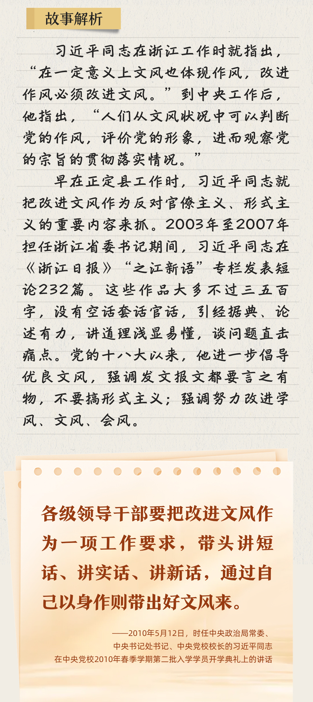 當前,全黨上下正在開展深入貫徹中央八項規(guī)定精神學習教育,縱深推進作風建設。關于作風建設,習近平總書記常用講故事的方式,傳達深意、感染他人,給人以思想啟迪。南方網(wǎng)、粵學習客戶端推出“聽習近平講作風故事”系列報道,與您一起感悟這些故事蘊含的深刻道理。