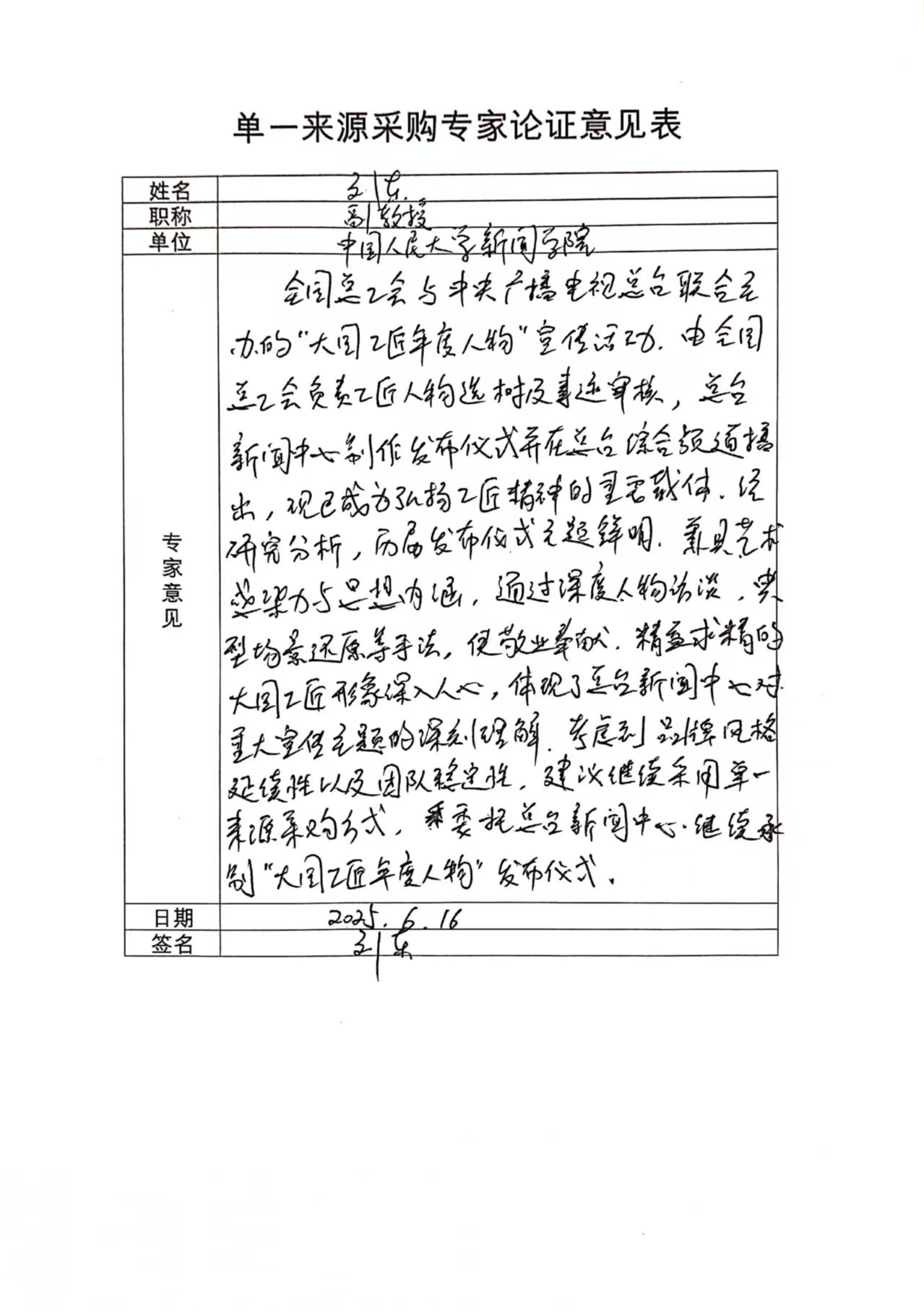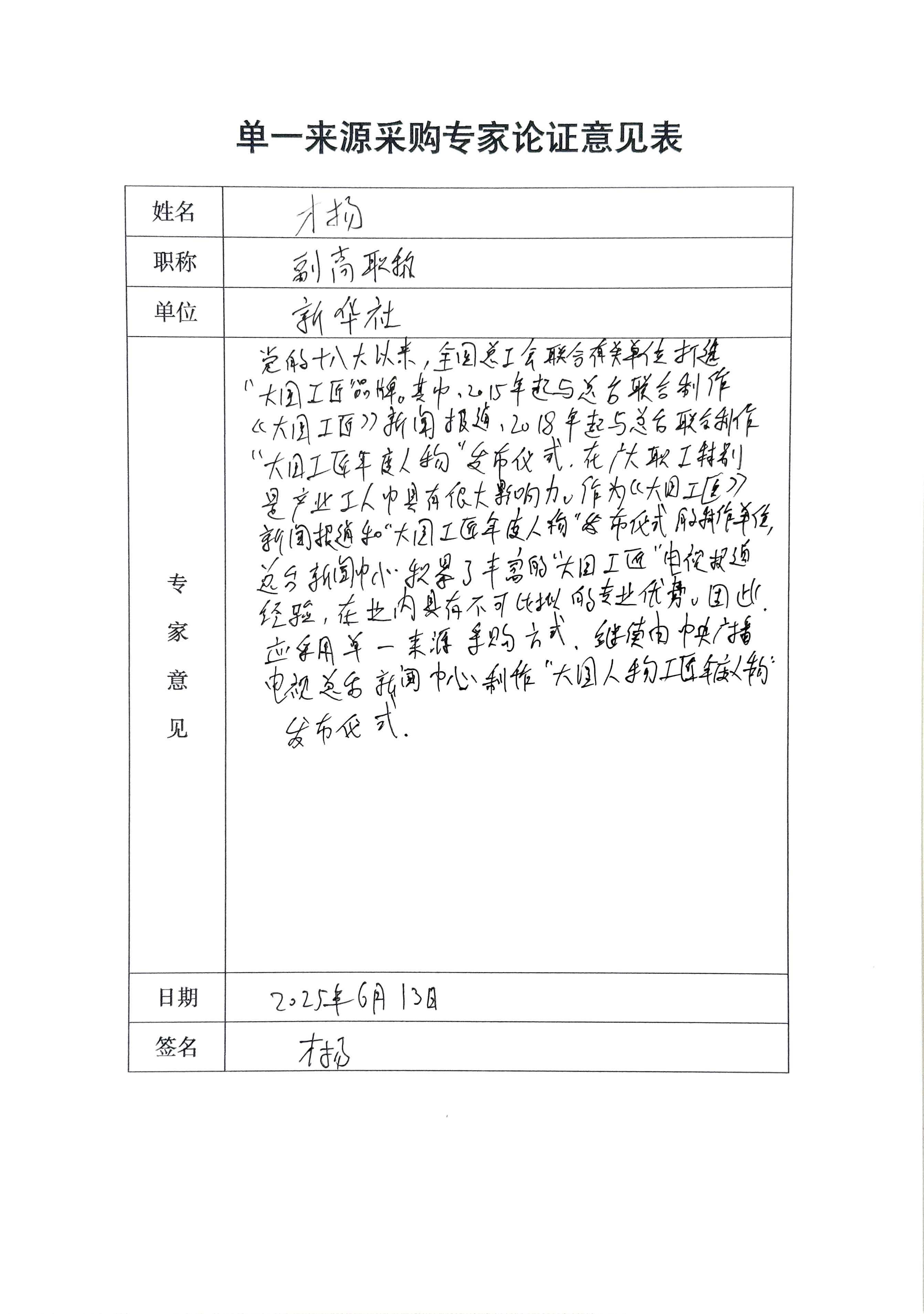 全國總工會(huì)宣傳教育部申請(qǐng)“大國工匠年度人物”發(fā)布儀式項(xiàng)目采用單一來源方式采購,該項(xiàng)目擬由中央廣播電視總臺(tái)新聞中心承擔(dān)。現(xiàn)予以公示。公示期限從2025年6月17日起至2025年6月23日止。