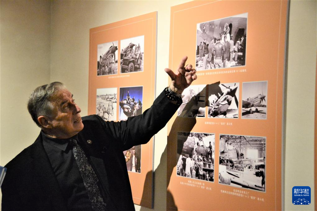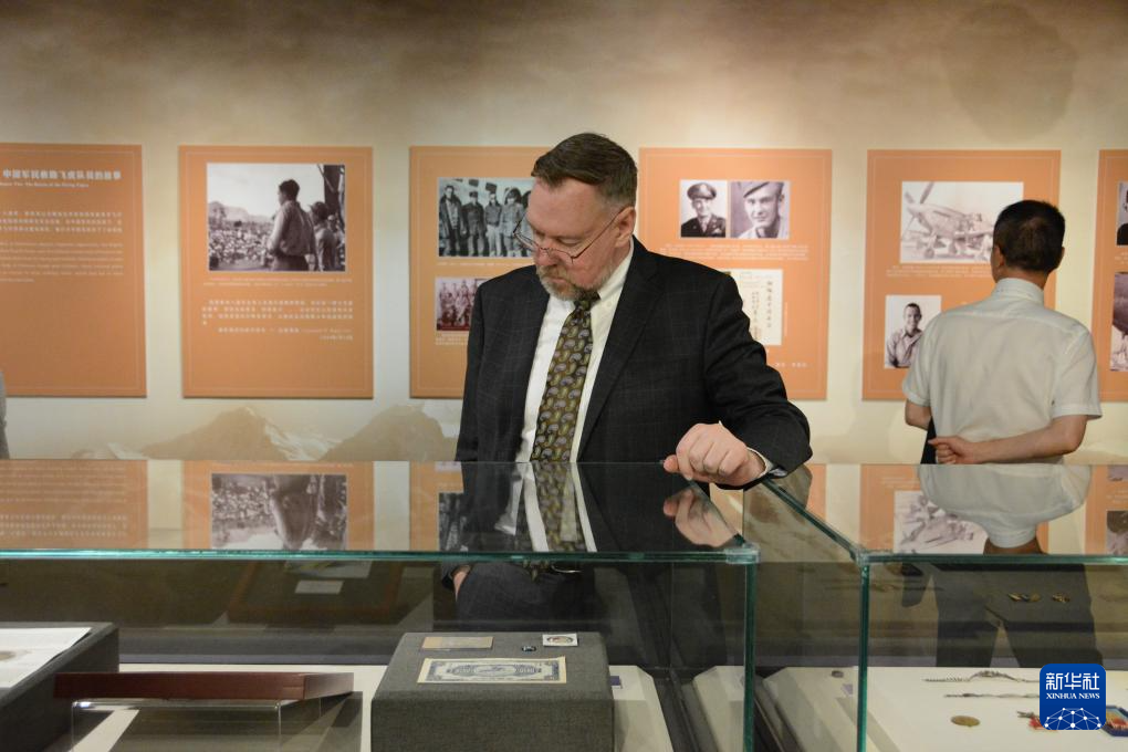 6月24日,美中航空遺產基金會主席杰弗里·格林在參觀“銘記英雄——飛虎隊主題歷史圖片展”。新華社記者 李昊澤 攝