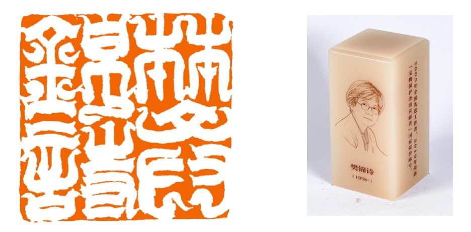 邊款:樊錦詩(1938-),2005年全國先進工作者,2019年榮獲“文物保護杰出貢獻者”國家榮譽稱號。