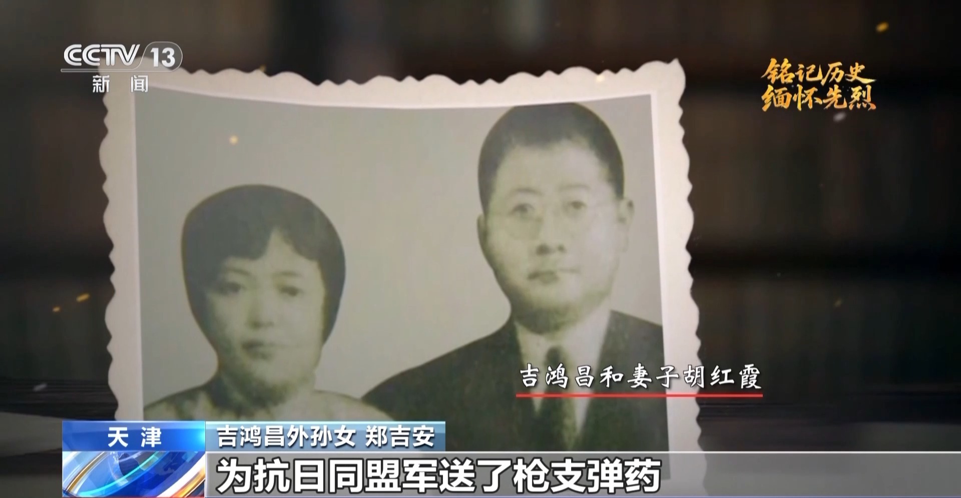吉鴻昌外孫女 鄭吉安:因為抗日同盟軍是民眾組織,沒有槍支彈藥。他不惜毀家紓難,讓我的外祖母變賣家產,一次交黨費6萬大洋,為抗日同盟軍送了槍支彈藥,而且是由我外祖母冒著生命危險送到張家口前線的。