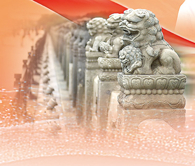 盧溝橋上的石獅子。新華社記者 張晨霖攝